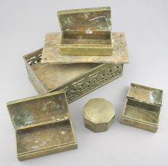Philippine Brass Betel Nut Box, 3 3/4 x 8 1/8 x 5".