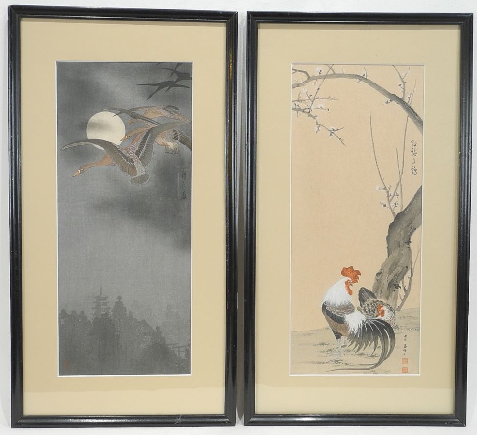 Two Woodblock Prints by Tsutaya Kichizo, 14 1/2 x 6", "Japanese Birds" (punctures noted).
