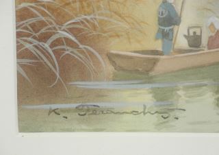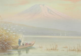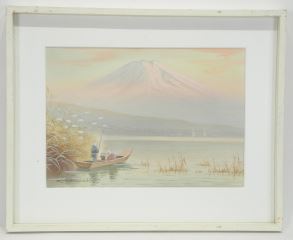 LOT 130 Japanese Impressionist Watercolour signed K.***, 7 3/4 x 10 3/4", "Boaters & Mt.Fuji". Estimate: $50 - $70 Sold For: $35 Auction Date: Tuesday, September 30 2025 at 4:00 PM