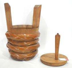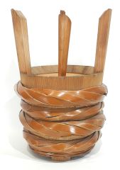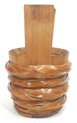Japanese Pine & Woven Fibre Covered Pail, 18 1/8"h.