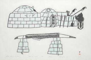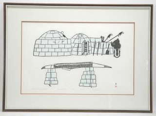 LOT 8 Dorset Stonecut signed Kanangina 1976, 17 1/4 x 27 1/4", "Winter Camp at Akerusak". Estimate: $200 - $400 Sold For: $200 Auction Date: Tuesday, September 30 2025 at 4:00 PM