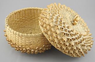 Mi'Kmaq Covered Basket, 5 x 7 1/2" Diameter.