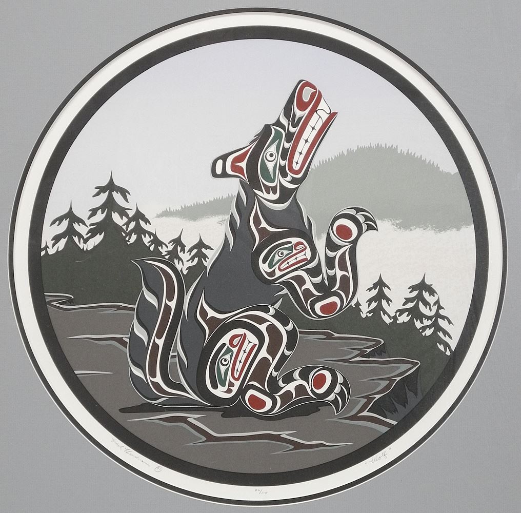 LOT 32 Coast Salish Serigraph signed Mark Henderson, 17 3/8" Diameter, "Wolf", #36/115, 1991. Estimate: $80 - $120 Sold For: $80 Auction Date: Tuesday, September 30 2025 at 4:00 PM