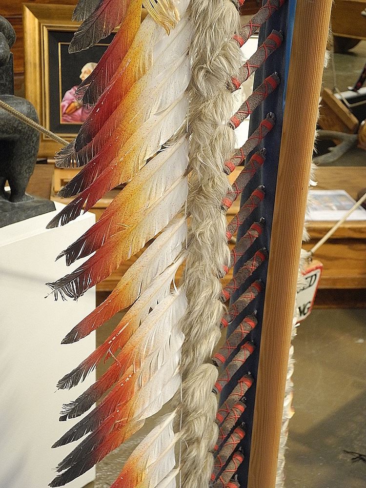 LOT 336 Feather Headdress, Painted Goose Feathers with Stand, 66"h. Estimate: $100 - $200 Sold For: $70 Auction Date: Tuesday, September 30 2025 at 4:00 PM