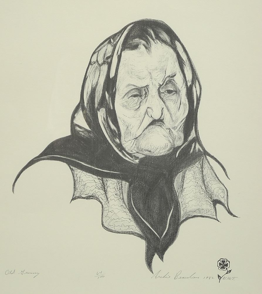 Serigraph signed Archie Beaulieu, 18 x 14 5/8", "Old Granny" #64/100.