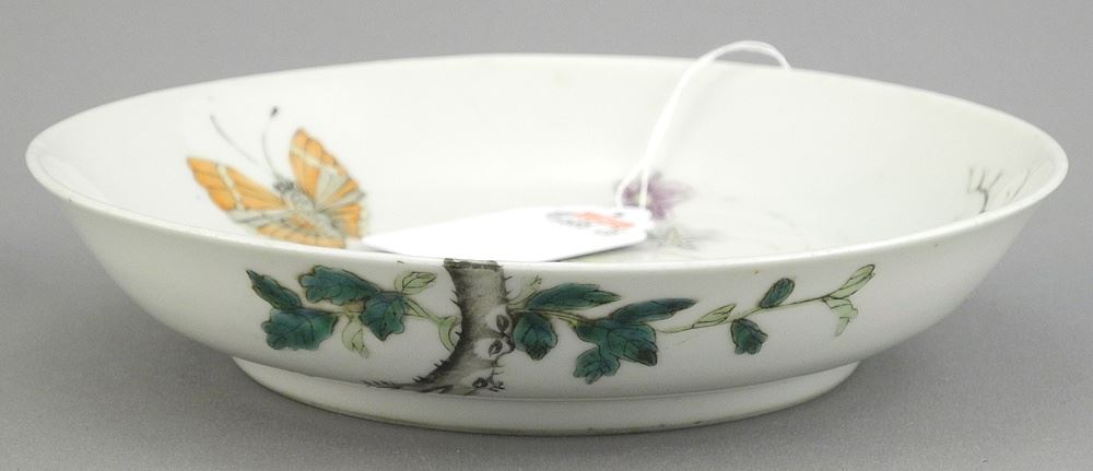 Chinese Famille Verte Enameled Porcelain "Butterfly" Dish, 6 1/8" Diameter.