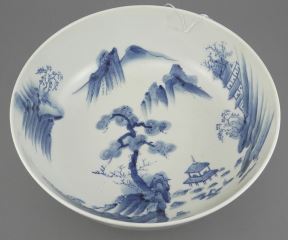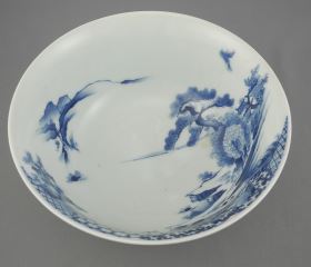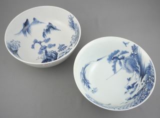 Four Japanese Blue & White Porcelain Bowls, 7 1/4 - 9 1/2" Diameter.
