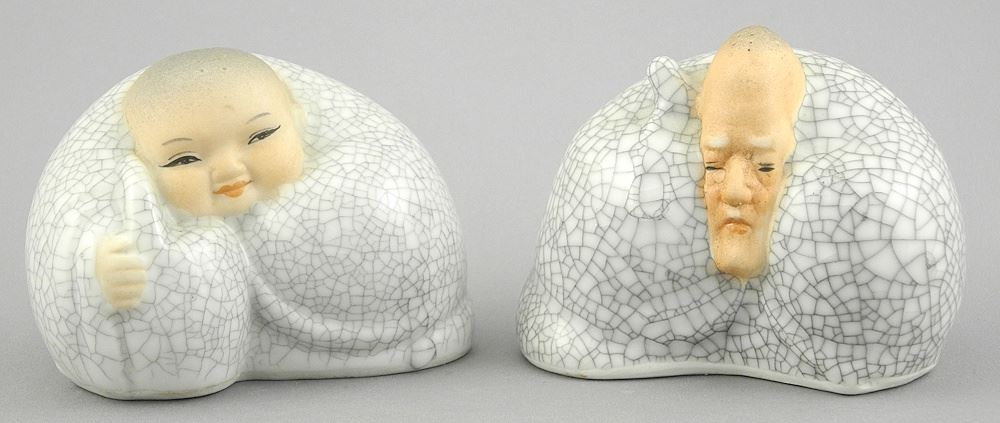 Four Chinese Crackle Glaze Buddha & Attendant Figures, 2 3/8 - 4 1/2"h.