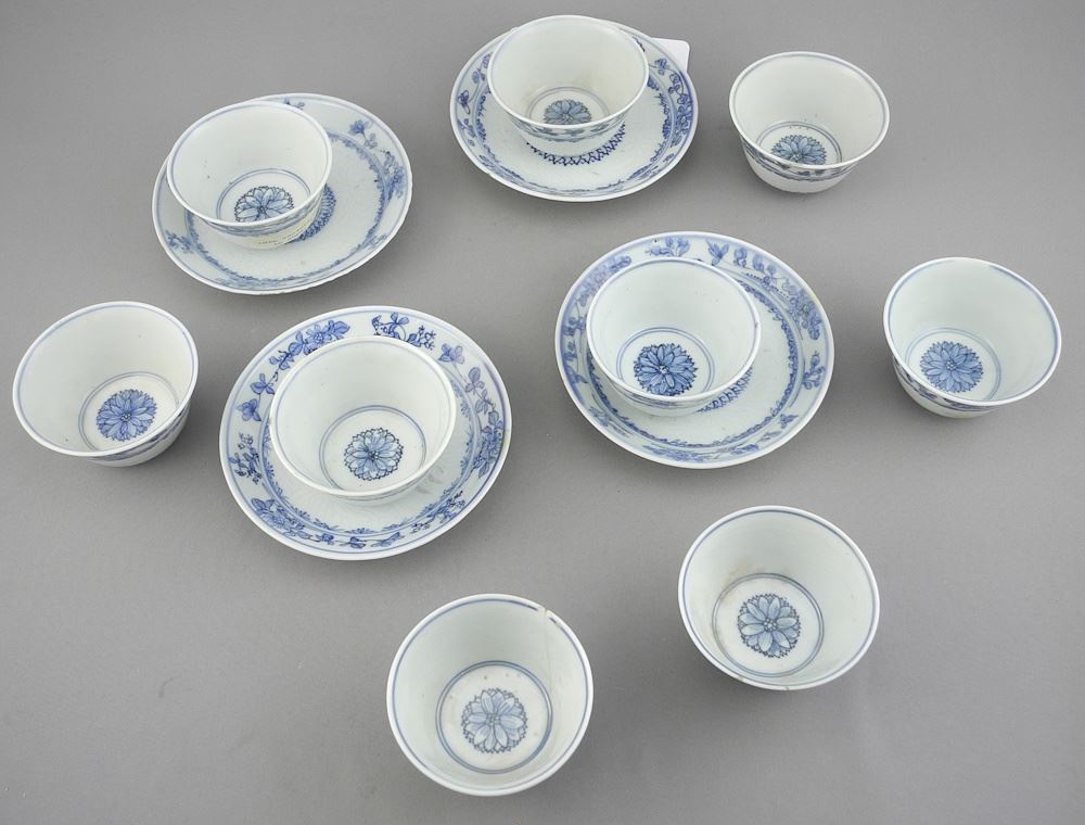 Nine Chinese Export Porcelain Tea Bowls & Four Saucers, 4 1/2" Diameter.