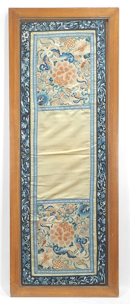 Qing Silk Embroidery Panel, Framed, 42 x 13 1/4".