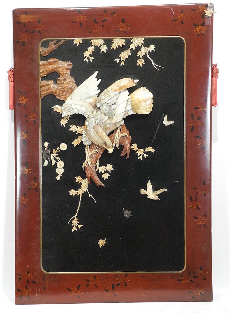 Pair of Japanese Shibayama & Lacquer Panels, 40 x 27" (losses noted), CANADIAN BIDDERS ONLY.