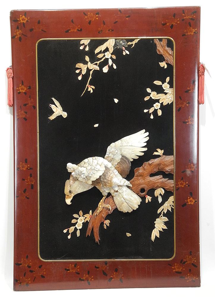 LOT 7 Pair of Japanese Shibayama & Lacquer Panels, 40 x 27" (losses noted), CANADIAN BIDDERS ONLY. Estimate: $200 - $400 Auction Date: Tuesday, January 20 2026 at 4:00 PM