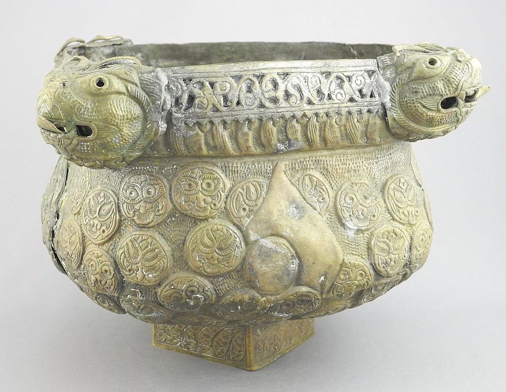 Tibetan Brass Kapala Bowl, 6 3/4 x 8 x 8".