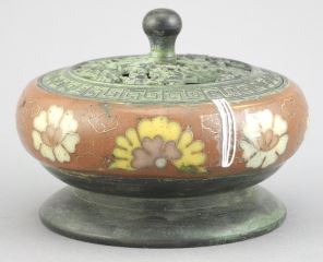 LOT 84 Chinese Verdigris Bronze & Cloisonne Censer, 2 1/2 x 3 1/2" Diameter. Estimate: $100 - $200 Sold For: $80 Auction Date: Tuesday, January 20 2026 at 4:00 PM
