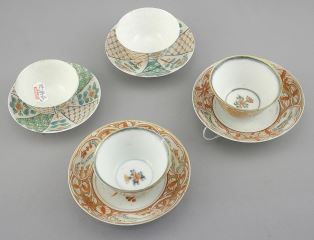 Two Pair of Japanese Imari Porcelain Tea Bowls & Saucers.