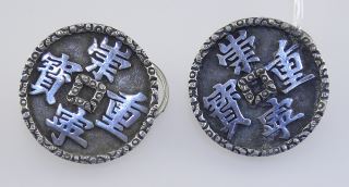 Pair of Antique Chinese Unmarked Silver Buttons, 1 3/8" Diameter TW 19.1g.