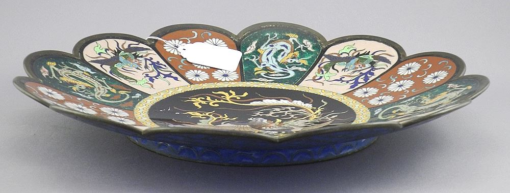 Japanese Lobed Cloisonne Dish, 11 7/8" Diameter.