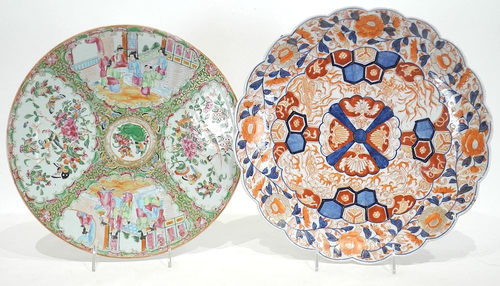 LOT 177 Two Asian Porcelain Wares: Japanese Imari (12 1/2" diam) & Canton Enamel , 11 3/4" Diameter. Estimate: $80 - $100 Auction Date: Tuesday, January 20 2026 at 4:00 PM