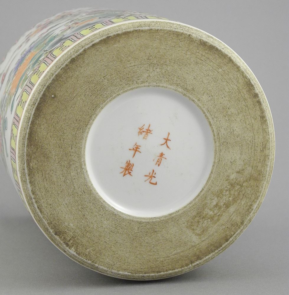 Chinese Famille Rose Porcelain Brush Pot with Guangxu Mark, 6 1/2"h