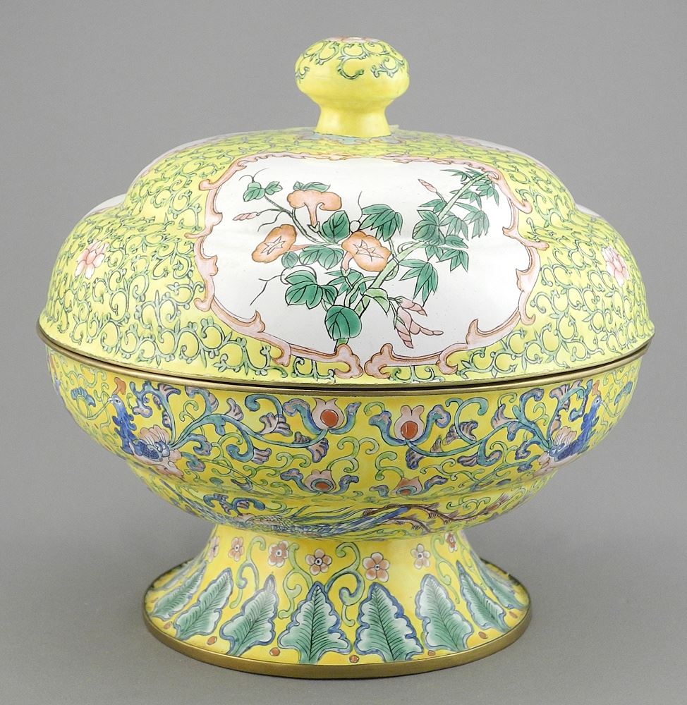 19th C. Canton Enamel Covered Pedestal Bowl, 7 1/4"h.