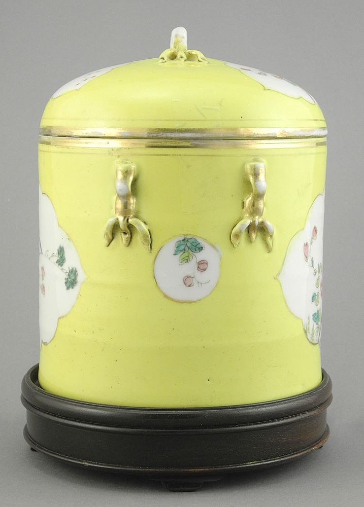 LOT 33 19th C. Chinese Famille Rose Porcelain Yellow Ground Covered Pot, 6 5/8"h (inner rim chip) w Estimate: $200 - $400 Auction Date: Tuesday, January 20 2026 at 4:00 PM