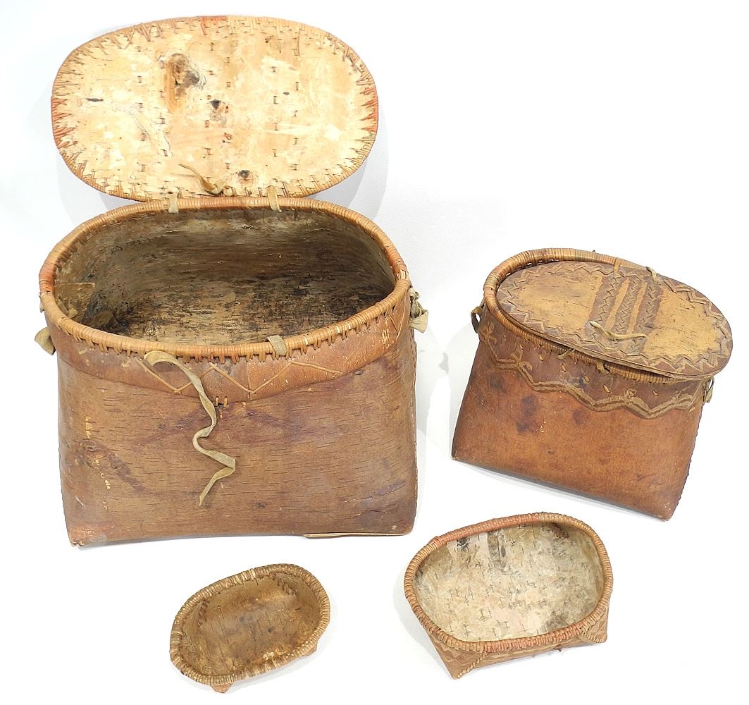 Seven Birch Bark Baskets, Largest 9 1/2 x 13 1/2 x 11 1/2".