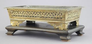 Chinese Bronze Trough Censer (2 5/8 x 8 3/8 x 4 3/4") with Stand.