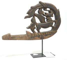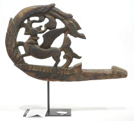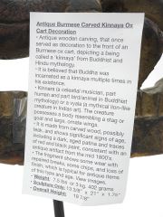 LOT 29 Antique Burmese Carved Kinnaya Ox Cart Decoration on Stand, 13 1/8 x 21 x 1 3/4". Estimate: $60 - $120 Sold For: $80 Auction Date: Tuesday, January 20 2026 at 4:00 PM