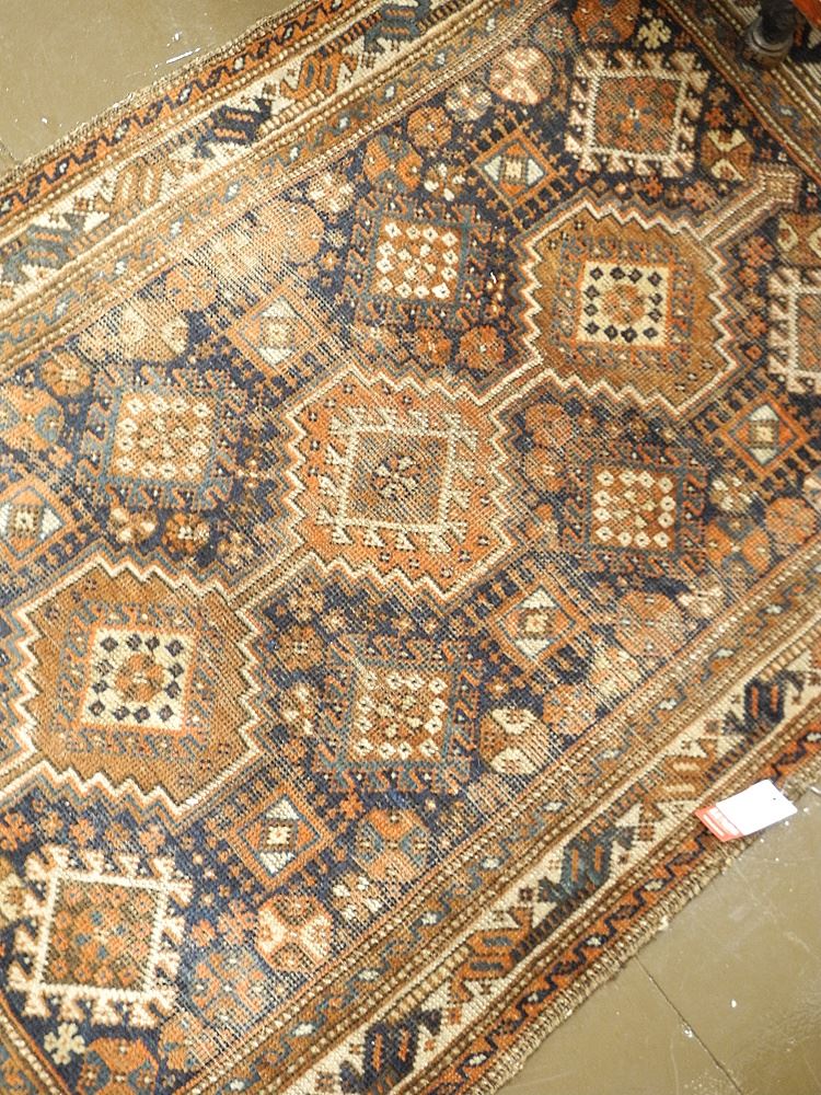 Hand Knotted Persian Mat Approximately 4'4" x 2'10" (worn).