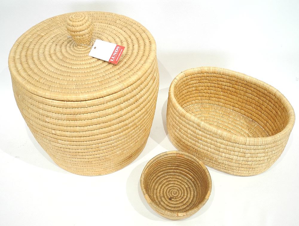 LOT 92 Three Inuit Grass Baskets (largest 13 3/4"h), Interior Labelled Reannie Weet No.57716. Estimate: $100 - $200 Sold For: $80 Auction Date: Tuesday, January 20 2026 at 4:00 PM