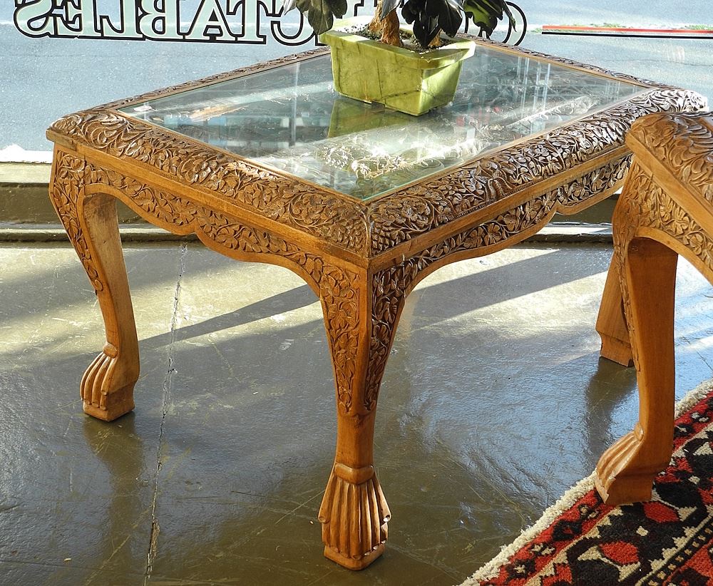 Pair of South Asian Chip Carved End Tables, 15 1/2"h.