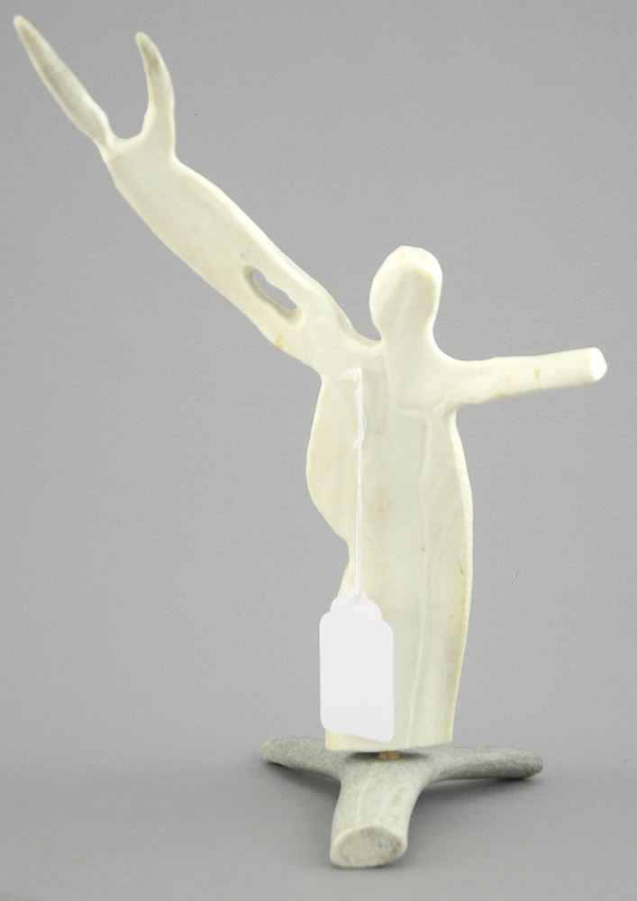 Unsigned Inuit Antler Sculpture, "Man Summoning Spirit", 9 3/4 x 6 x 5".