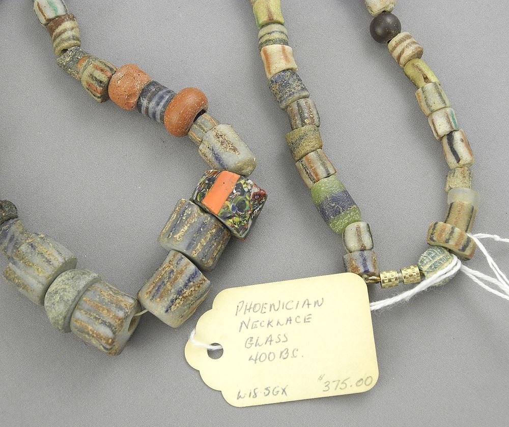 Phoenician Glass Bead Necklace, 22"L.