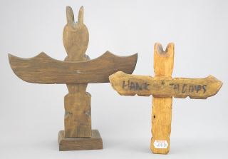 Northwest Coast "Thunderbird" Totem signed Will Dennis (9"h) & Another Totem signed Hank Thomas,
