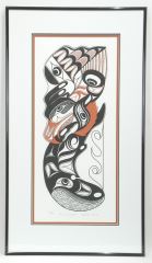 LOT 54 Nuu_Chah-Nulth Serigraph signed A. (Art) Thompson 1991, 21 1/4 x 9 1/2" , "Kwant-Yahts Gift" #80/1 Estimate: $200 - $300 Sold For: $375 Auction Date: Tuesday, January 20 2026 at 4:00 PM