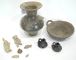 LOT 161 Group of Pre-Columbian Pottery: Bowl /Figures/Vase/Juglets (2 modern/as found) 9 1/8"h (tallest). Estimate: $100 - $200 Sold For: $70