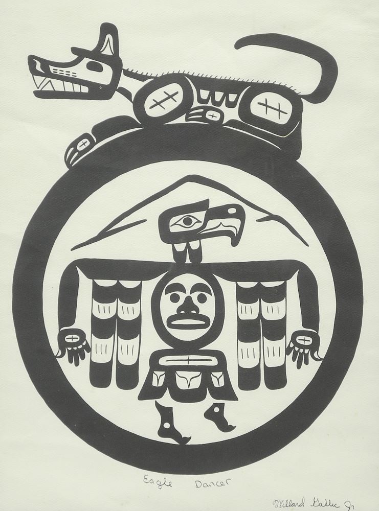 Serigraph signed Willard Gallic Jr 95', 17 1/2 x 13 1/4", "Eagle Dancer".
