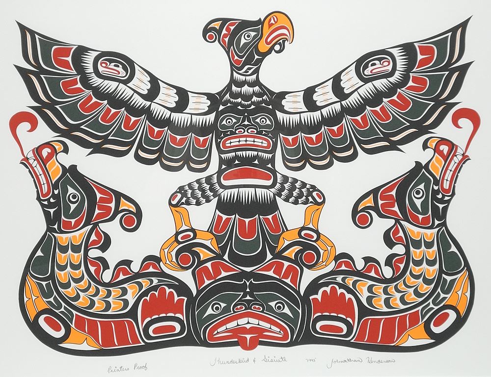 Kwagiulth Serigraph signed Jerry Henderson, 18 x 24", "Thunderbird & Sisiutl", 1993 (P/P).