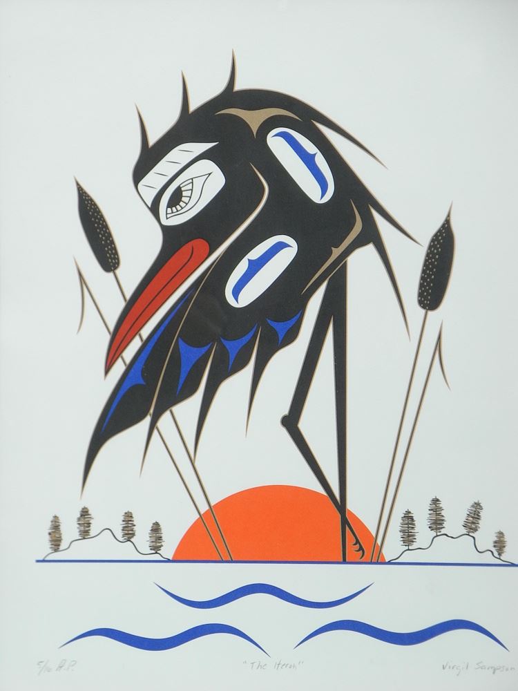 Serigraph signed Virgil Sampson, 19 1/2 x 15 1/2", "The Heron" #5/16 (A/P).