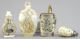Four Chinese Snuff Bottles: 2 Boulder/Enameled Glass/Synthetic Amber