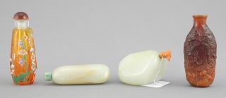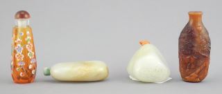 LOT 245 Four Chinese Snuff Bottles: 2 Boulder/Enameled Glass/Synthetic Amber, CANADIAN BIDDERS ON Estimate: $80 - $100 Sold For: $850 Auction Date: Tuesday, January 20 2026 at 4:00 PM