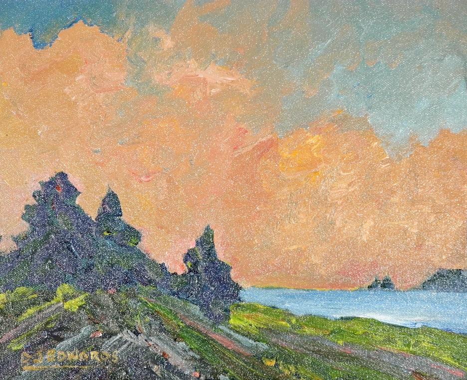 LOT 135 Acrylic on canvas signed D.J.Edwards 10 in. x 12 in., "Pacific Essence". Estimate: $75 - $125 Auction Date: Tuesday, February 25 2014 at 7:00 PM