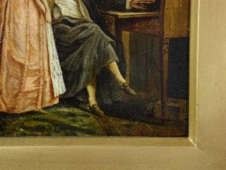 LOT 48 Oil painting indistinctly signed, "Negotiation", 11 3/4" x 8 3/4". Estimate: $800 - $1,200 Auction Date: Tuesday, May 13 2014 at 7:00 PM