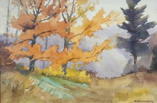 Watercolour signed Tom Roberts, 11 1/2 in. x 17 1/2 in., "Wooded Landscape in Fall".