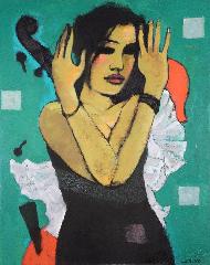Oil on canvas signed (Luis) Merino, d.2008, 30" x 24","Broken Cello #3".