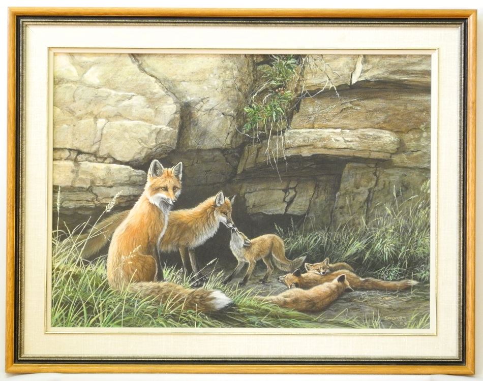 Oil on board signed (Lissa) Calvert '91, 19" x 23", "Red Foxes".