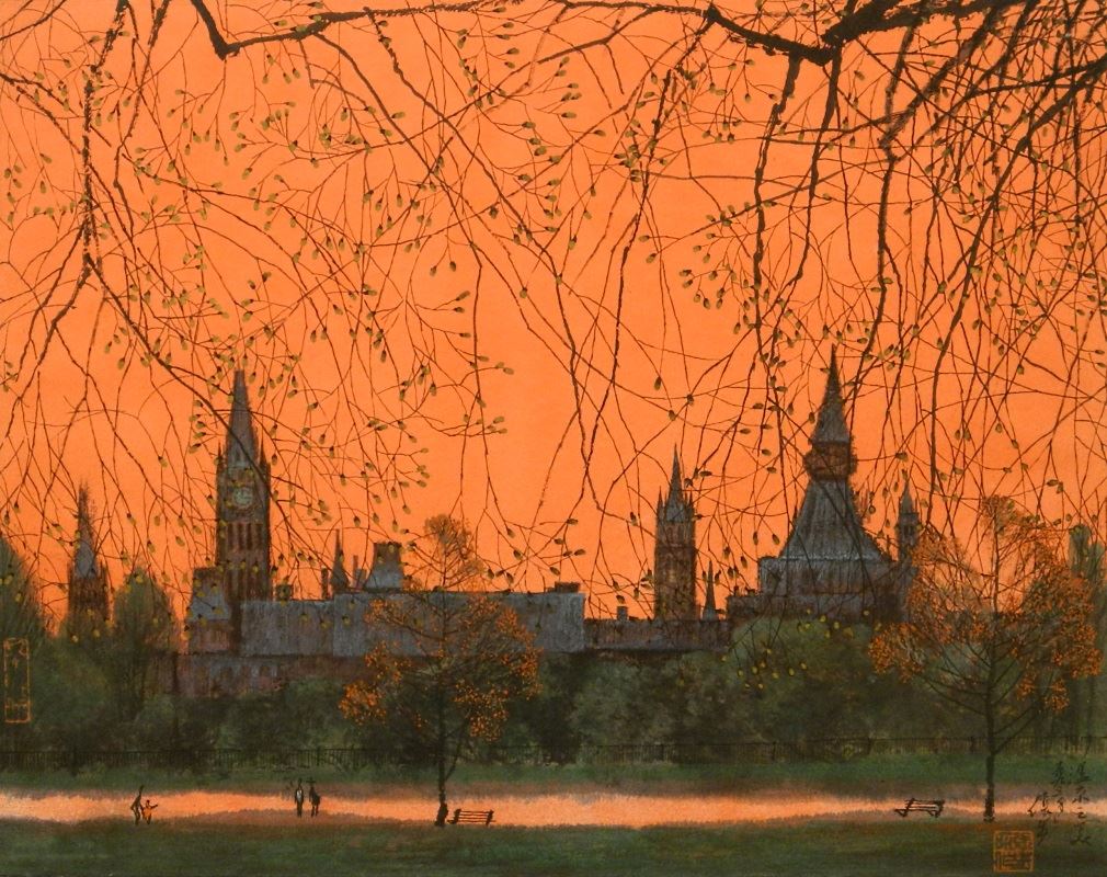 Watercolour signed Zhang Bu, 18" x 22 3/4", "The Beauty of Ottawa".