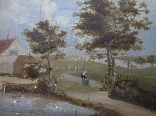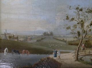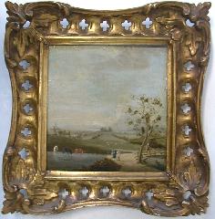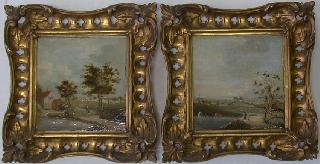 LOT 64 Pr. of small oil paintings on panel, unsigned, 6 1/4" x 6", "European country scenes". Estimate: $1,500 - $2,000 Auction Date: Monday, April 28 2003 at 7:00 PM