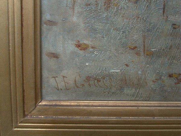 LOT 45 Oil painting on canvas signed J.E. Gillies 1883, 28" x 19", "Birch trees". Estimate: $600 - $800 Auction Date: Monday, April 28 2003 at 7:00 PM