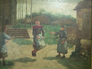 LOT 21 Oil painting on canvas signed E. Dinet, 27 1/2" x 35 1/2", "Children playing skip rope". Estimate: $8,000 - $12,000 Auction Date: Monday, April 28 2003 at 7:00 PM